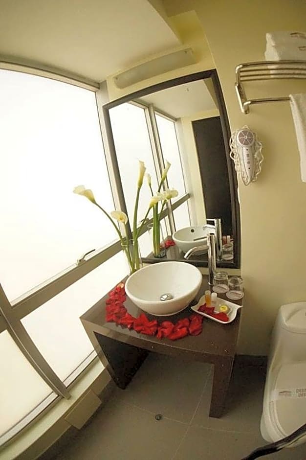 This quadruple room features a hot tub. Featuring free toiletries, this quadruple room includes a private bathroom with a bath, a shower and a hairdryer. The spacious air-conditioned quadruple room features a flat-screen TV with cable channels, soundproof walls, a mini-bar, a seating area as well as city views. The unit has 1 bed.